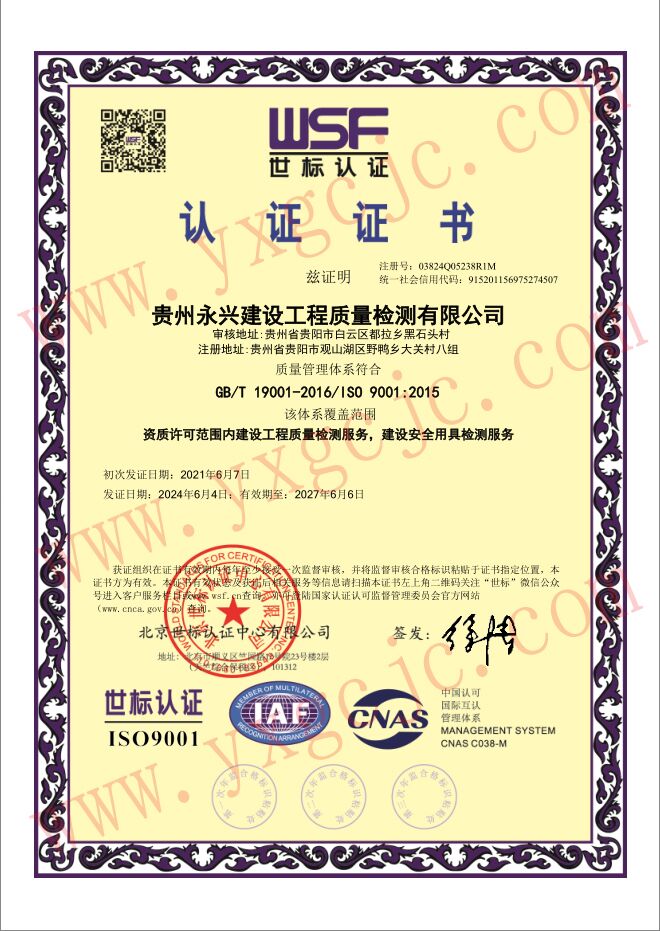 版權(quán)所有 貴州永興建設(shè)工程質(zhì)量檢測(cè)有限公司